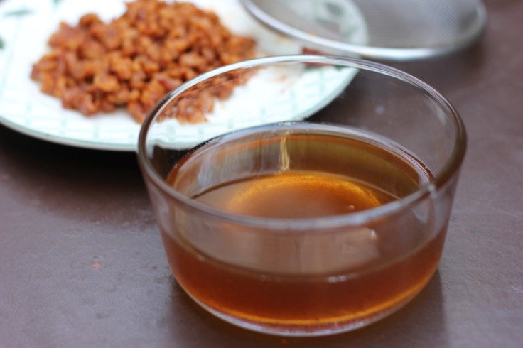 - Use a colander with very small holes to remove the cracklings.