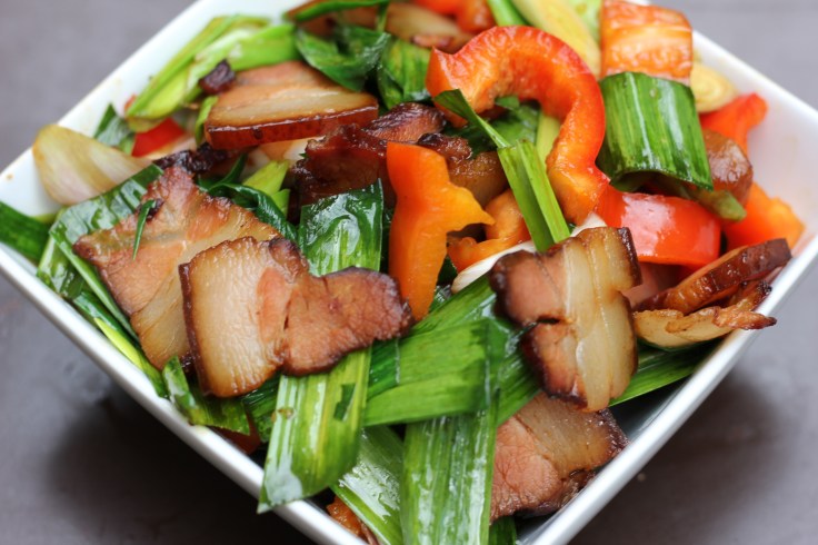 How do Chinese cook bacon? For many native Chinese growing up in South China like Hubei, Hunan, Sichuan, Anhui, Guizhou, etc., one classic home-cooking dish is stir-fried Chinese bacon with garlic leaves. When the flavorful pork is scented with fresh garlic leaves, it becomes the best dish to serve with rice.