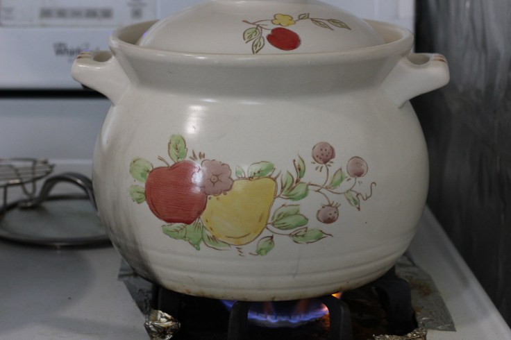 - Transfer all to a sizable earthenware pot. Add white liquor and sugar. Bring a boil first, cover the lid and simmer over medium fire when beef shank is 90% cooked, for one hour.